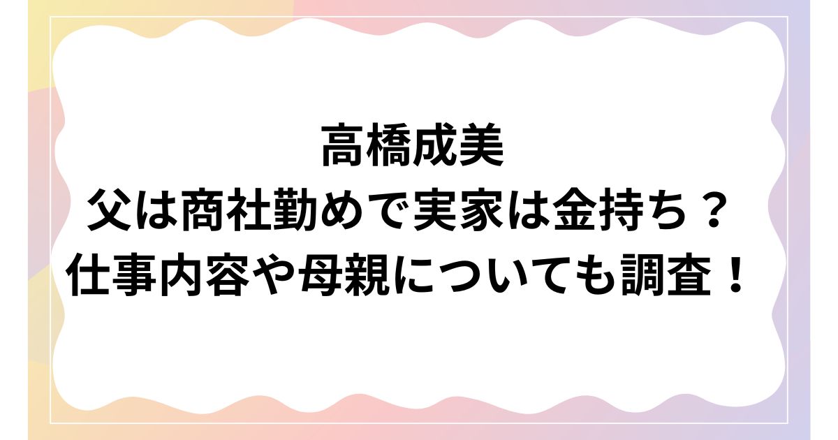 高橋成美さんの父は商社勤務の可能性が高く、実家は経済的に余裕がある家庭と考えられています。